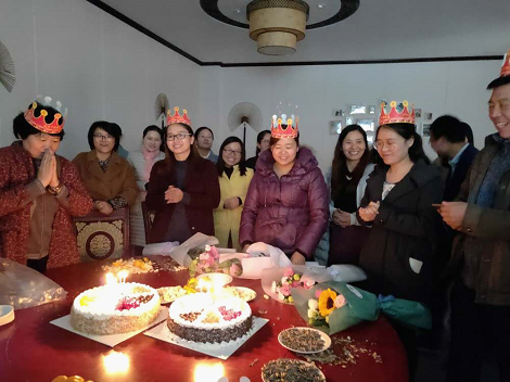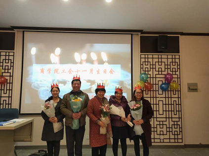 11月22日,商学院工会十一月份职工生日会于文质楼中餐厅实训室如期举行。商学院的全体老师结束忙碌的工作,共同为五位寿星老师们庆祝生日。这次活动为老师们在工作之余留下一份甜蜜的回忆。