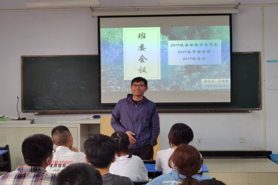 2021年05月07日中午,2019级国际经济与贸易、市场营销、会计专业在文质楼204教室召开了班委会议。此次班委会议由辅导员杜静静主持,2019级国际经济与贸易、市场营销、会计专业全体班委共同参加,商学院党总支书记李开辉、商学院团总支书记范子娜莅临现场。