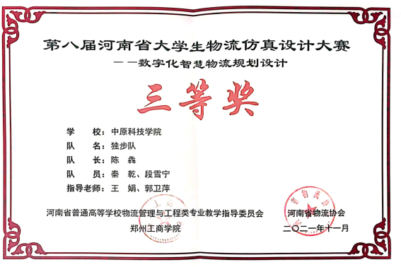 2021年11月13日,第八届河南省大学生物流仿真设计大赛总决赛圆满落幕。河南省大学生物流仿真设计大赛是根据《国务院办公厅关于深化高等学校创新创业教育改革的实施意见》、《河南省教育厅关于河南省本科高等学校智慧教学三年行动计划》等相关文件精神,结合我省高等教育综合改革要求而举办的。