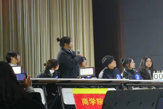 此次比赛以学院为单位,共有七支代表队参赛,每小组四名同学,其中一名作为替补队员。比赛采用淘汰制,上半场的前三名在下半场中继续参赛,以团队答题为主,团队赛又分为团队抢答题、团队必答题及风险题。竞赛围绕资助育人相关的重要论述、全国和河南省学生资助相关政策、诚信征信、金融知识和系统操作等方面,考察了参赛选手们的个人知识程度、临场应变能力、团队合作精神。竞赛以个人必答题拉开帷幕,知识点涵盖各个方面。在“步步为营”环节中,选手们展现了个人丰富的知识储备。在“你追我赶”环节中,选手们动作敏捷,积极抢答,现场气氛紧张激烈,展现了对资助知识政策的熟悉程度。经过两轮激烈的比拼,商学院成功晋级下半场比赛。在“力争上游”环节中,选手们反应灵敏,沉着镇定,积极应对。而在“绝境求生”环节中,选手们默契配合,台下观众们鼓掌声、欢笑声不绝于耳,缓解了现场的紧张气氛。本着“友谊第一,比赛第二”的精神,参赛队员们赛出了风格,更赛出了水平。在经过激烈的角逐之后,我院荣获二等奖,同时获得“优秀组织奖”荣誉称号。比赛中,参赛队员们展现出明德立信、自立自强、拼搏向上的青春风采。“长风破浪会有时,直挂云帆济沧海”,让我们期待今后商学院代表队更加精彩的表现。