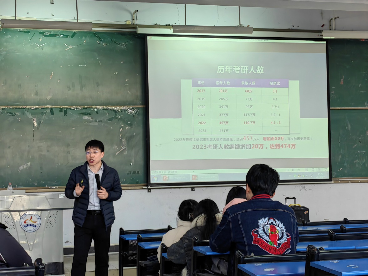 为助力我学部(郑州校区)2025届考研学生顺利择校报考,我学部(郑州校区)于3月7日下午在文质楼213开展2025届考研学生考研指导专题讲座。特邀天任教育张阳老师作为主讲人,2025届毕业生参加此次专题讲座,讲座由辅导员杨晨进行主持。