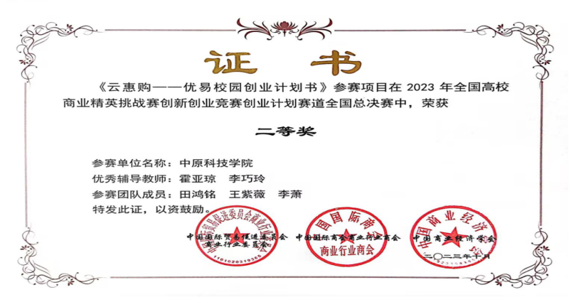 喜报!中原科技学院管理学院赵芳鋆老师在河南省教育厅教育教学信息化交流活动中荣获一等奖