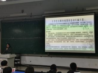 11月25日,商学院辅导员杜静静在文质楼313教室举行“文明养成教育”主题班会。商学院2019级市场营销、国际经济与贸易、会计专业全体学生参加了此次主题班会。 会上,辅导员杜静静以文明养成教育为主题,从文明养成教育的基本原则,总体目标和实施方案这几个方面分