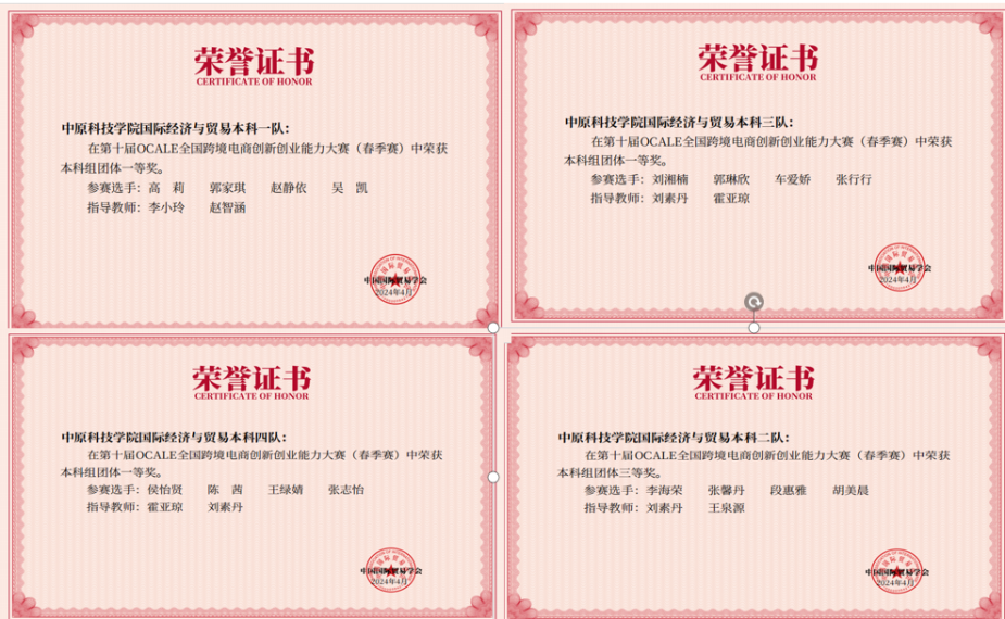 第十届OCALE全国跨境电商创新创业能力大赛(春季赛)全国总决赛于2024年4月顺利进行。OCALE全国跨境电商创新创业能力大赛是由中国国际贸易学会、全国外经贸职业教育教学指导委员会主办的全国性大型赛事,是跨境电子商务领域含金量和知名度较高的学科竞赛之一,至今已举