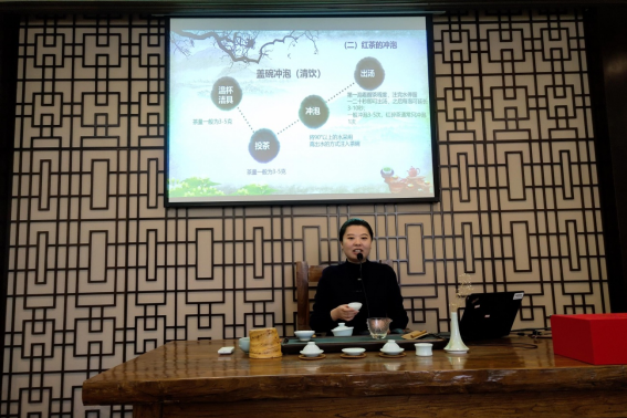 为丰富教职工的业余文化生活,普及茶文化知识,2021年11月19日12:50,校工会与商学院分工会在文质楼一楼103茶艺实训室联合举办了一场“走进茶艺”主题沙龙活动。校工会副主席左丽娟致辞,商学院院长朱雪芹、商学院分工会主席李开辉等领导及35名已报名教职工参与了本次活动。本次活动由商学院贾斐斐老师主讲。