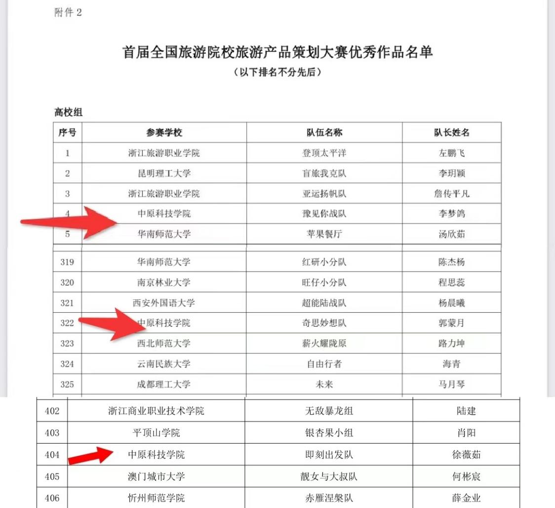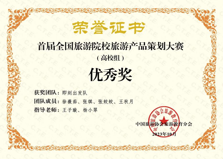 我院学子踊跃报名,认真备赛。最终,2022级旅游管理专业“豫见你战队”(指导教师赵芳鋆)、“奇思妙想队”(指导教师赵芳鋆)、“即刻出发队”(指导教师王子璇)荣获此次比赛高校组优秀作品奖。通过此次比赛,不仅让本专业学子的理论学习在实践过程中得到了锻炼,更是凸显了其勇于追求、不断拼搏的精神,为学院赢得了荣誉。也希望我院学子再接再厉,积极参与实践项目,挑战自我,为未来学习和职业生涯中的成功打下坚实的基础!