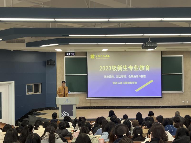 为引导旅游管理、酒店管理、会展经济与管理专业2023级新生深化专业认识,树立专业自信,帮助学生明确学习目标及未来规划,更好更快地适应大学生活。旅游与酒店教研室于11月17日在许昌校区一得楼N103举办关于2023级新生专业教育活动,教研室老师与同学们进行了现场交流。经济与管理学部副部长赵芳鋆与教研室专任教师许国林、刘娟娟、彭璐璐、赵则皓、王珊、杨海棠、王子璇、方永芳参会。
