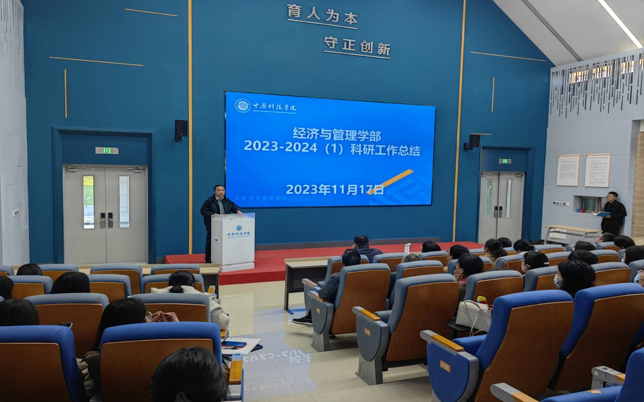 最后,经管学部部长、经济学院院长郑秀峰进行了总结发言。郑部长向大家传达和解读了11月8号学校工作会议的精神,具体包括三项工作要求,下一步工作如何推进,他向学部全体教职工提出了几项具体要求,包括强化问题意识,强化风险意识,强化底线意识,同时对接下来的学部工作进行了整体把握和部署,包括做好年度总结、年度考核,做好2024年的工作计划,科研团队的创建,经管学部与立心书院工作的协同以及提高教职工自身的纪律意识等。他指出学部正站在新的发展起点上,全体教职工应同心所向、同题共答、同频共振、同向发力,团结一致干事业、凝心聚力谋发展,努力谱写学部高质量发展新篇章。