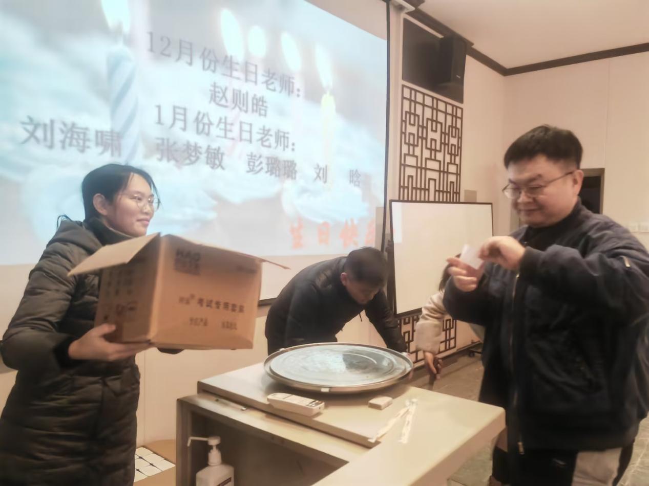寒意渐浓,温暖如故。为进一步加强对教职工的关心关怀,不断提升教职工的幸福感和归属感,让每位教职工都能感受到商学院分工会大家庭的温暖,在院部领导赵芳鋆副部长的指导安排下,工会精心组织,为本学期生日的教职工集体送上祝福。副校长杜建松、党委副书记兼工会主席左丽娟、经管学部部长郑秀峰、经管学部部长助理李鹏、经管学部副部长张超均来到集体生日会现场,与到场的“寿星”们欢聚一堂,共同分享这一美好时刻。