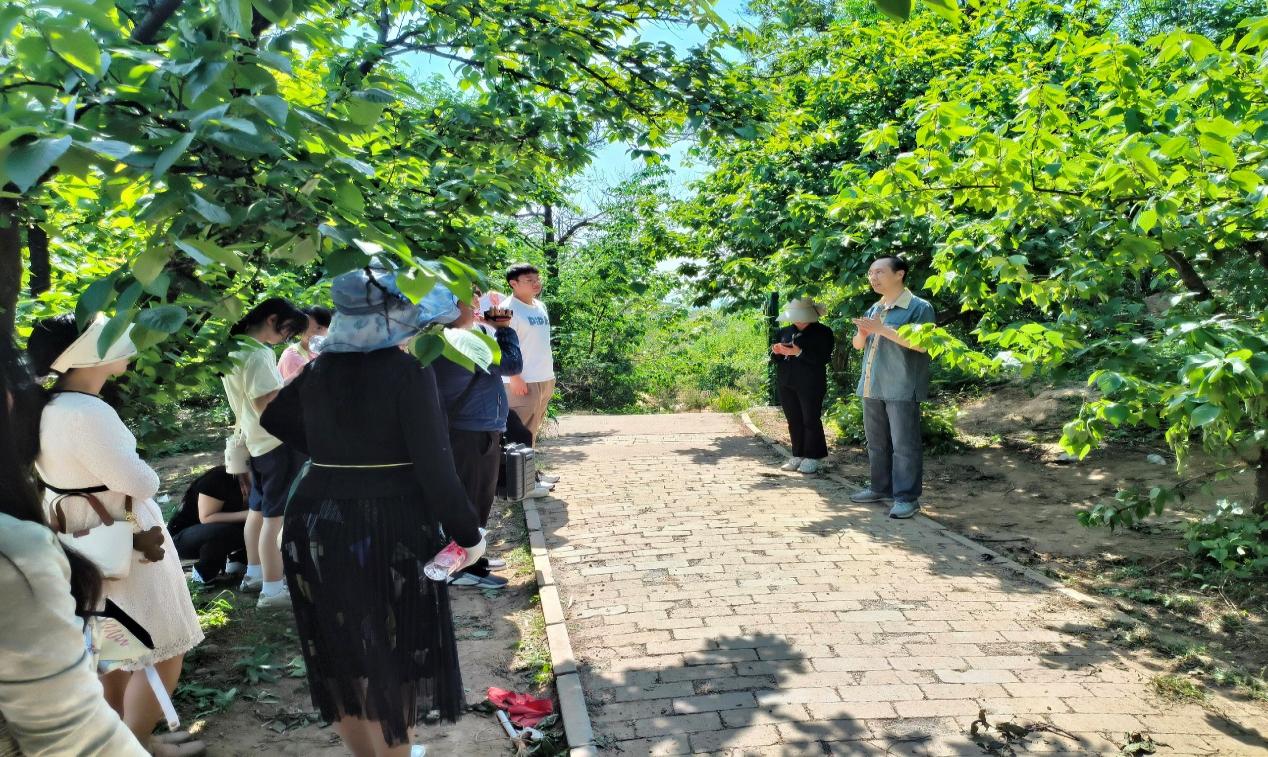 工作室成员受到基地创始人何媛女士的热情欢迎,并就此次交流、学习委派研学旅行项目负责人井紫乂经理进行专项安排。此次活动主要包括参观、课程体验、座谈会等内容。除了参观基地药材室、药材种植场地、樱桃采摘园,还探访了防空洞和郑州古八景之一的“梅峰远眺”,让大家亲身感受研学课程的实际开展情况和所依托的场地,增加对研学旅行现实情况的了解。课程体验部分让立志成为研学旅行指导师的同学们认识并掌握中医药知识,体会中草药种植的不易,动手参与以中草药为原料的香包制作。座谈环节,基地导师和专业老师就文旅转型发展和人才需求进行了观点探讨,并和同学们进行了深入交流。