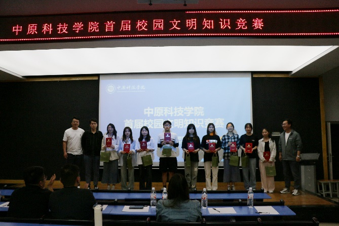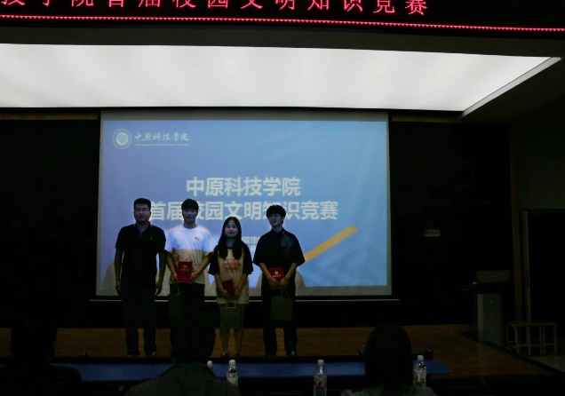 为营造文明、和谐、有序的校园文化环境,落实我校"三风"建设,推进校园文明创建,5月10日晚7点,经济与管理学部在文质113教室举办“创建文明校园,争做文明青年”中原科技学院首届校园文明知识竞赛,经济与管理学部部长助理李鹏、校团委团干丁鹏元、学生发展处李晓鹏、各院部团学工作负责人、各院部参赛队伍以及200余名学生代表参加本次活动。