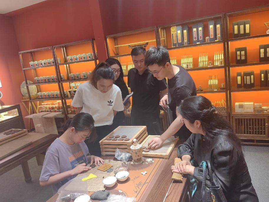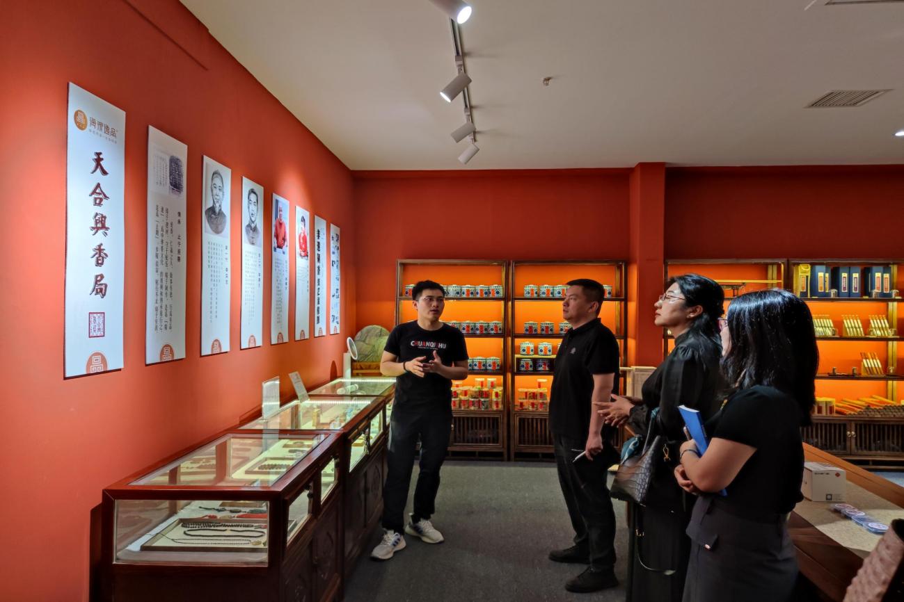 交流过程中,天合兴香局负责人、郑州市非物质文化遗产传承人李彦妍为学部代表讲述了企业的整体概况,并共同参观了企业内部设施及员工工作环境。随后的座谈会中,赵芳鋆部长向企业介绍了学部目前的情况,同时表明学校和学部十分重视校企合作,也十分关注毕业生的实习实践过程,希望能在校企合作共育人才的基础上,形成双赢局面。企业负责人李彦妍表示,为实现校企合作双赢的有效模式,公司会为每一位前来实习就业的学生提供更多的实践机会,助力其未来的职业生涯规划与发展。座谈会上,双方还就校企协同育人的方向与目标、毕业生职业规划建设、人才培养质量提升路径、就业岗位搭建、行业学院建设模式等内容进行了探讨,并对毕业生应聘求职等事宜达成了初步意向。