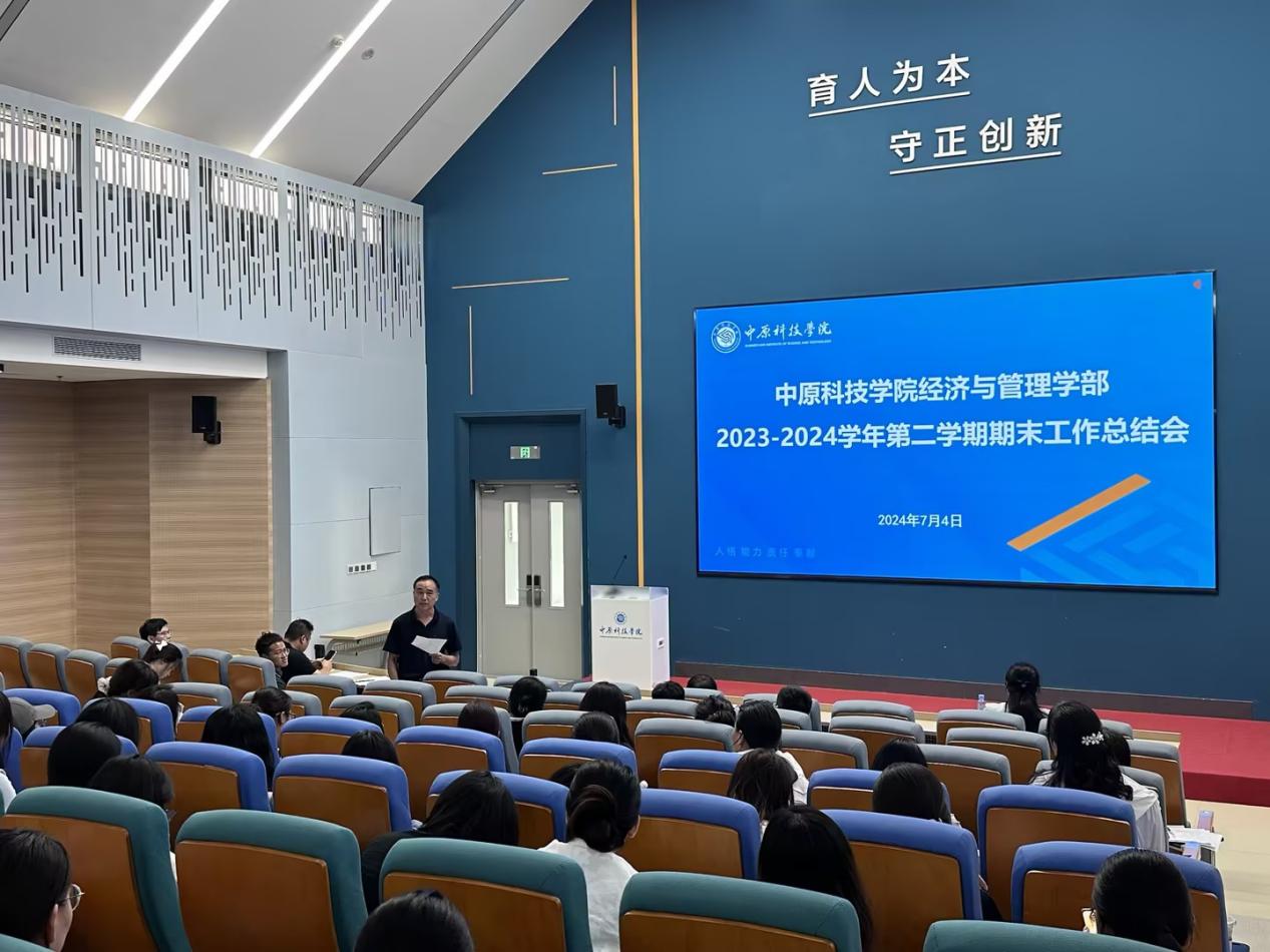 为深入贯彻党的二十大精神,致力于积极深化教育教学领域的革新举措,不断强化师资队伍建设,并以显著提升师德师风、教学质量与科研能力为核心,旨在全方位推动学部各项工作迈向高质量发展新阶段,实现全面跃升与可持续发展,经济与管理学部于7月4日召开2023—2024学年第二学期期末工作总结大会,会议由经管学部办公室主任刘旭捷主持,经管学部部长、经济学院院长郑秀峰,副部长、管理学院副院长赵芳鋆,经济学院副院长仝新顺及全体教职工参加了此次会议。