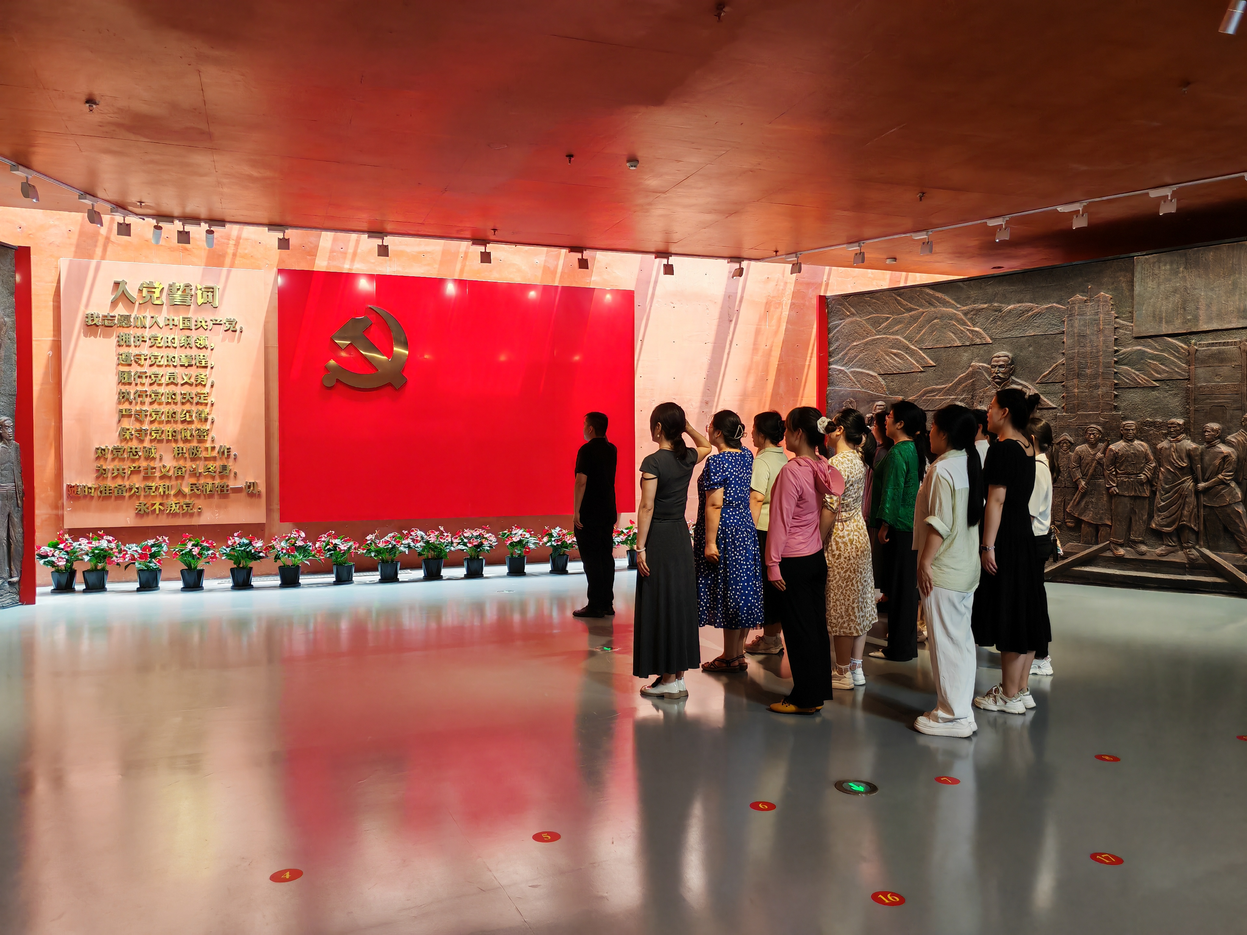 中共洛阳组诞生地纪念馆是一座集党史展览陈列与党建教育为一体的大中型历史类纪念馆,在讲解员的引导下,在场党员陆续参观了中共洛阳组历史陈列展、河南省红色资源巡礼展览、红色家书主题展等展厅。通过实物展示、文献资料、多媒体影像、立体雕塑等多样化的方式,使大家全面了解了中共洛阳组成立前后风起云涌的历史,深刻感悟到老一辈革命家和共产党人自力更生、艰苦奋斗、勇于拼搏的革命精神,激发党员们在新时代要继续发扬不畏艰险、迎难而上的大无畏精神。最后,面向鲜红的党旗,全体党员高举右拳,进行庄严宣誓,重温入党誓词,再次接受了党性的洗礼,进一步增强了党员意识和党性修养。