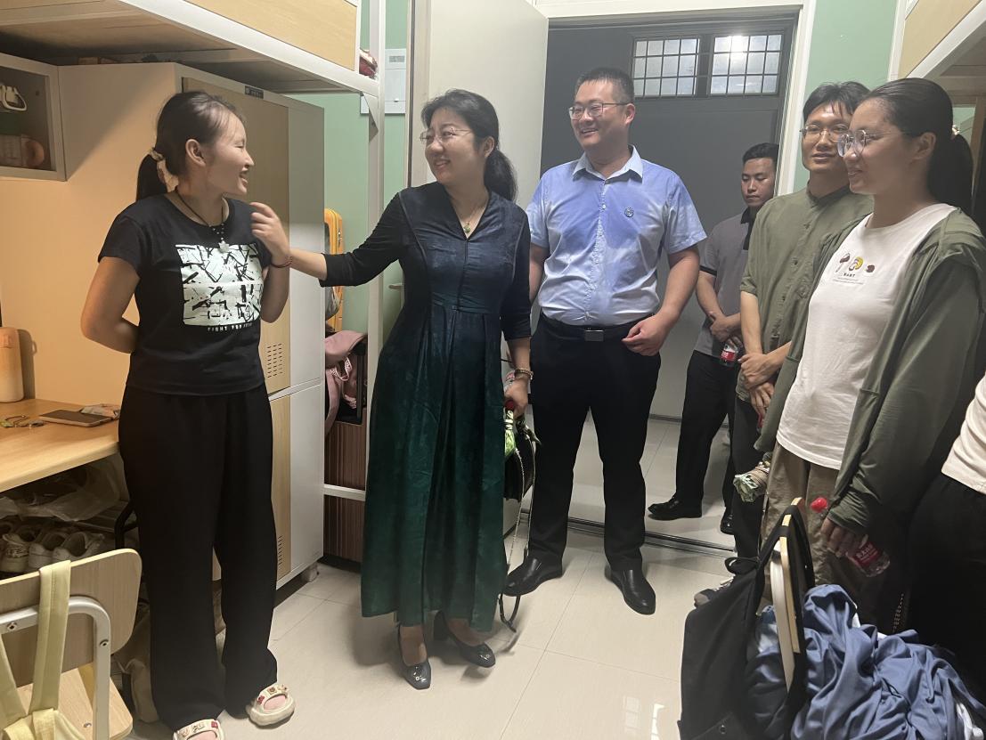 在交流过程中,马鹏辉书记还向新生们询问了他们的报到情况、住宿条件是否满意以及是否适应新的环境等。新生们纷纷表示,学部的周到安排和学长学姐的热情帮助让他们感受到了家的温暖,对即将开始的大学生活充满了期待。同时,领导们也强调了安全纪律的重要性,提醒新生们注意人身和财产安全,遵守学校的各项规章制度。