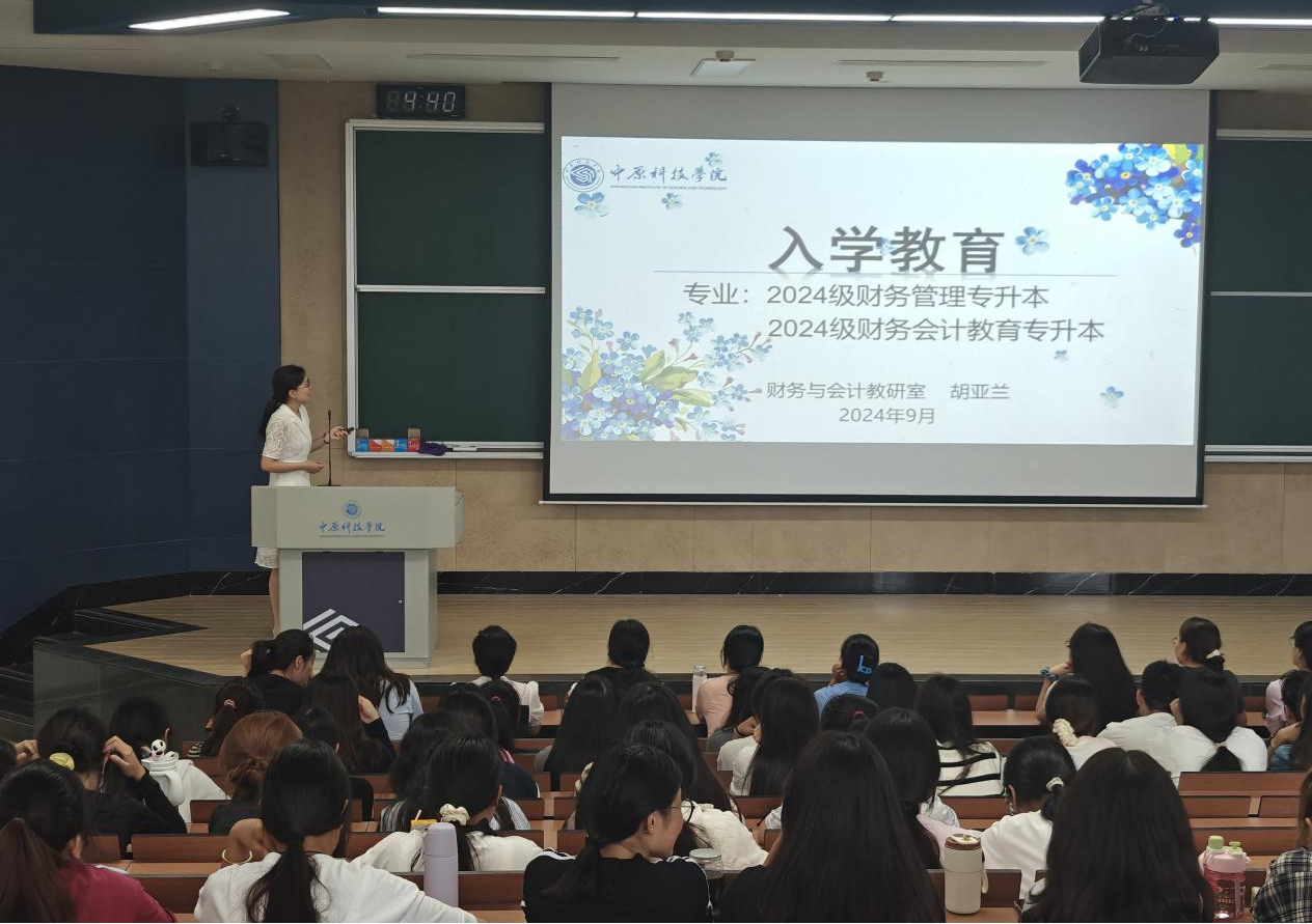 为了帮助新生更好地适应本科生活,了解专业特色,明确学习目标,管理学院财务与会计教研室于9月12日举办了财务管理(专升本)和财务会计教育(专升本)专业新生入学教育活动。会议由教研室主任王南主持,管理学院党总支书记马鹏辉、带班辅导员、教研室全体教师和2024级专升本新生参会。