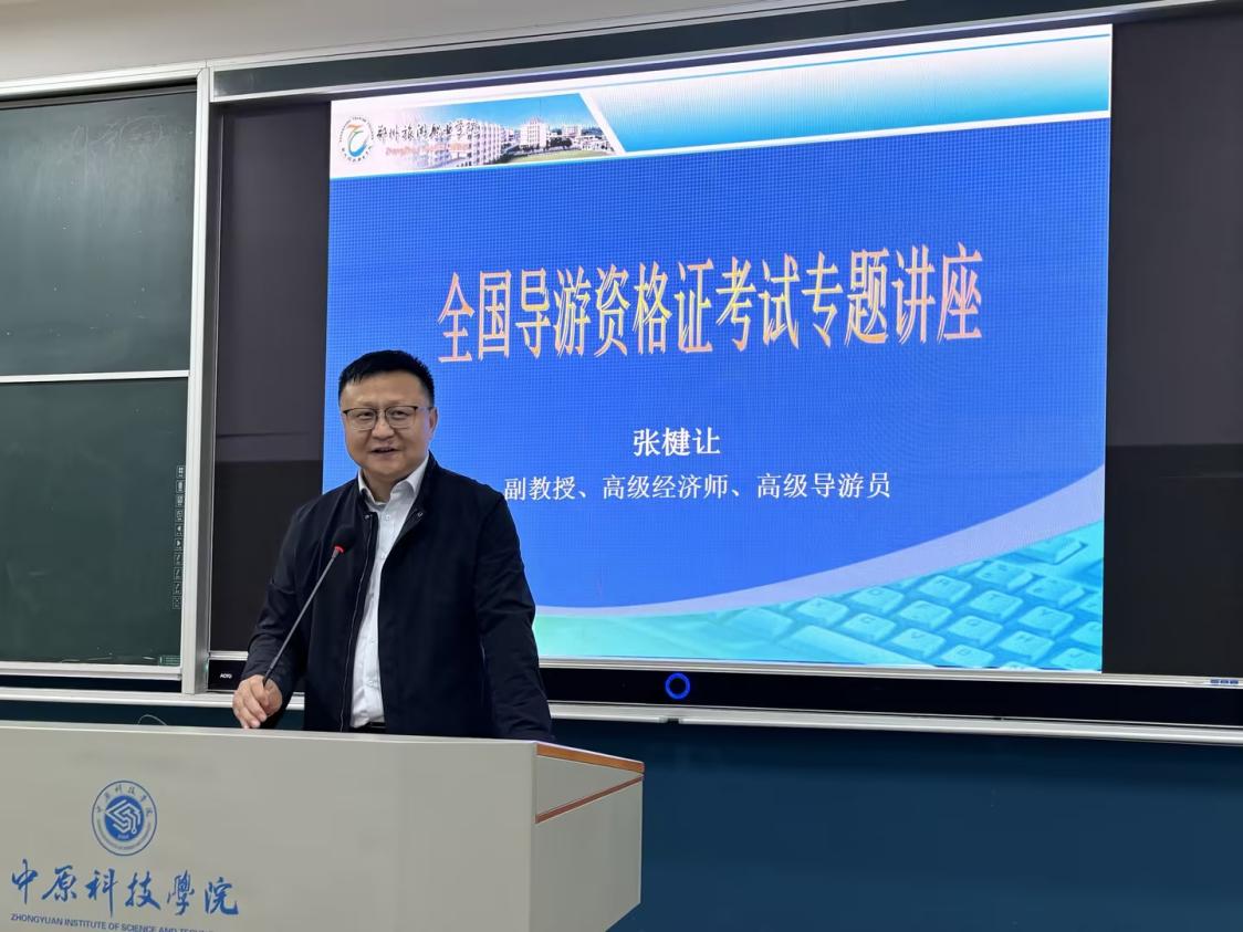 为解答全国导游资格证考试报考、考试以及临考学生疑问,让学生熟悉考试流程和要求、明确自身方向,为学生提供一个交流、咨询、学习和沟通的平台。10月17日,旅游与酒店管理教研室在立业楼S102举办全国导游资格证考试专题讲座。本次讲座有幸邀请到河南省旅游协会常务理事、河南省(全国)导游资格证考试评委、国家导游技术技能大师张楗让和全国金牌导游、河南省红色旅游培训讲师杨小翠进行专题分享。经济与管理学部副部长、管理学院院长赵芳鋆,旅游与酒店管理教研室副主任方永芳和教师代表及旅游管理专业学生积极参会。